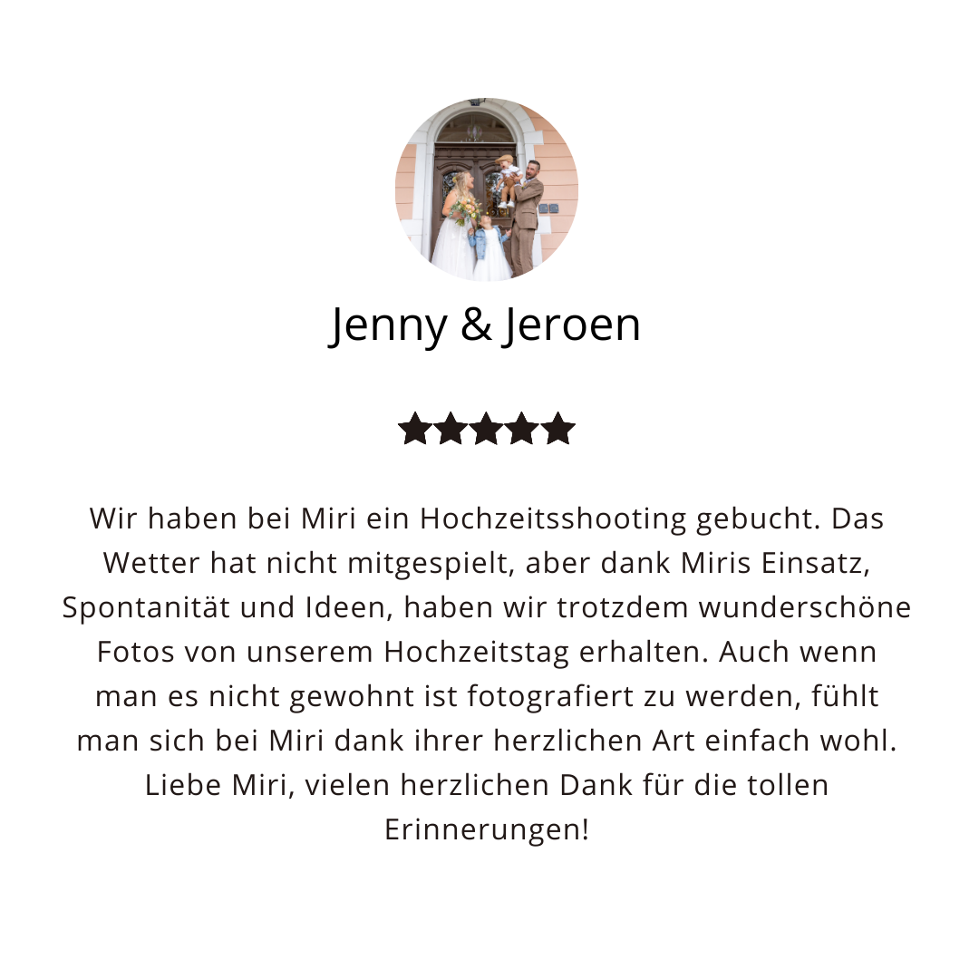 Das Shooting ist unverbindlich und wird bei der Buchung für die Hochzeit angerechnet.