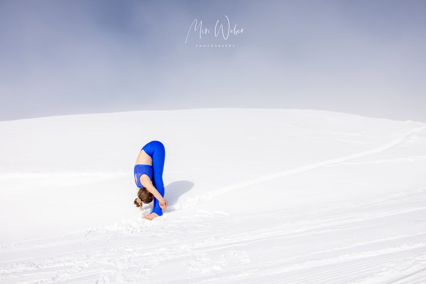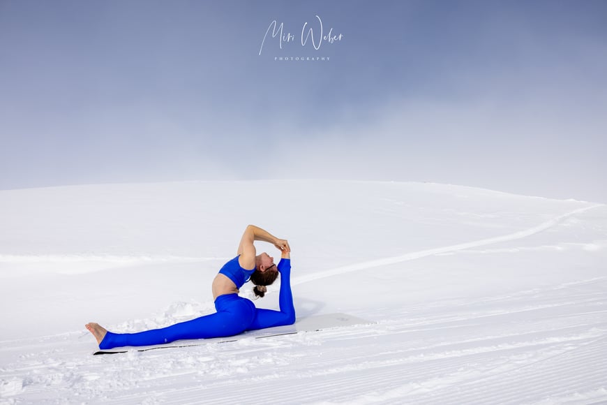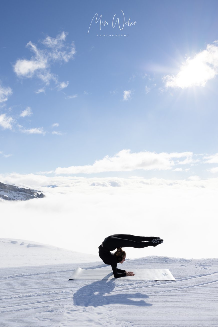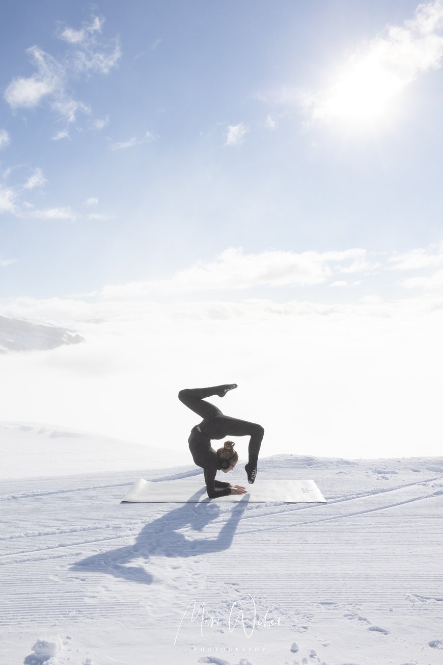 Der Nebel machte dem blauen Himmel und der Sonne Platz. Die Natur zauberte für das Portrait Shooting eine natürliche Leinwand, welche die Kontorsion in den Vordergrund stellte.