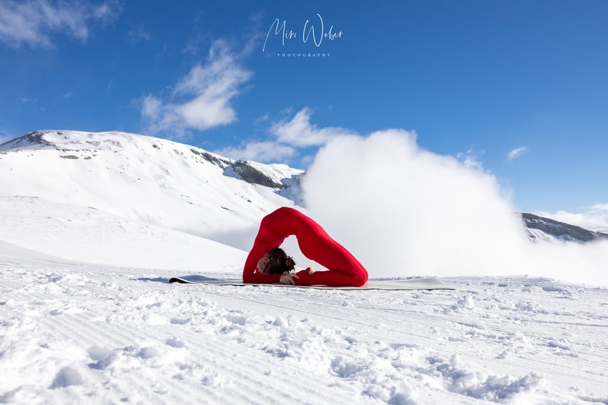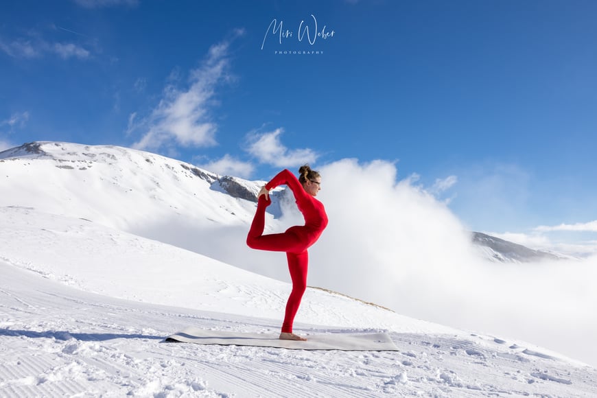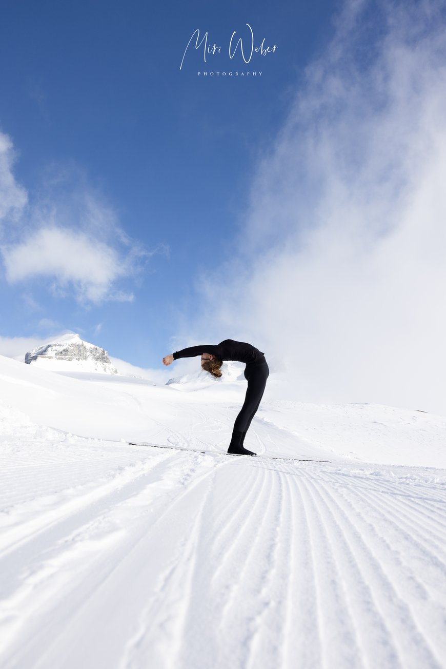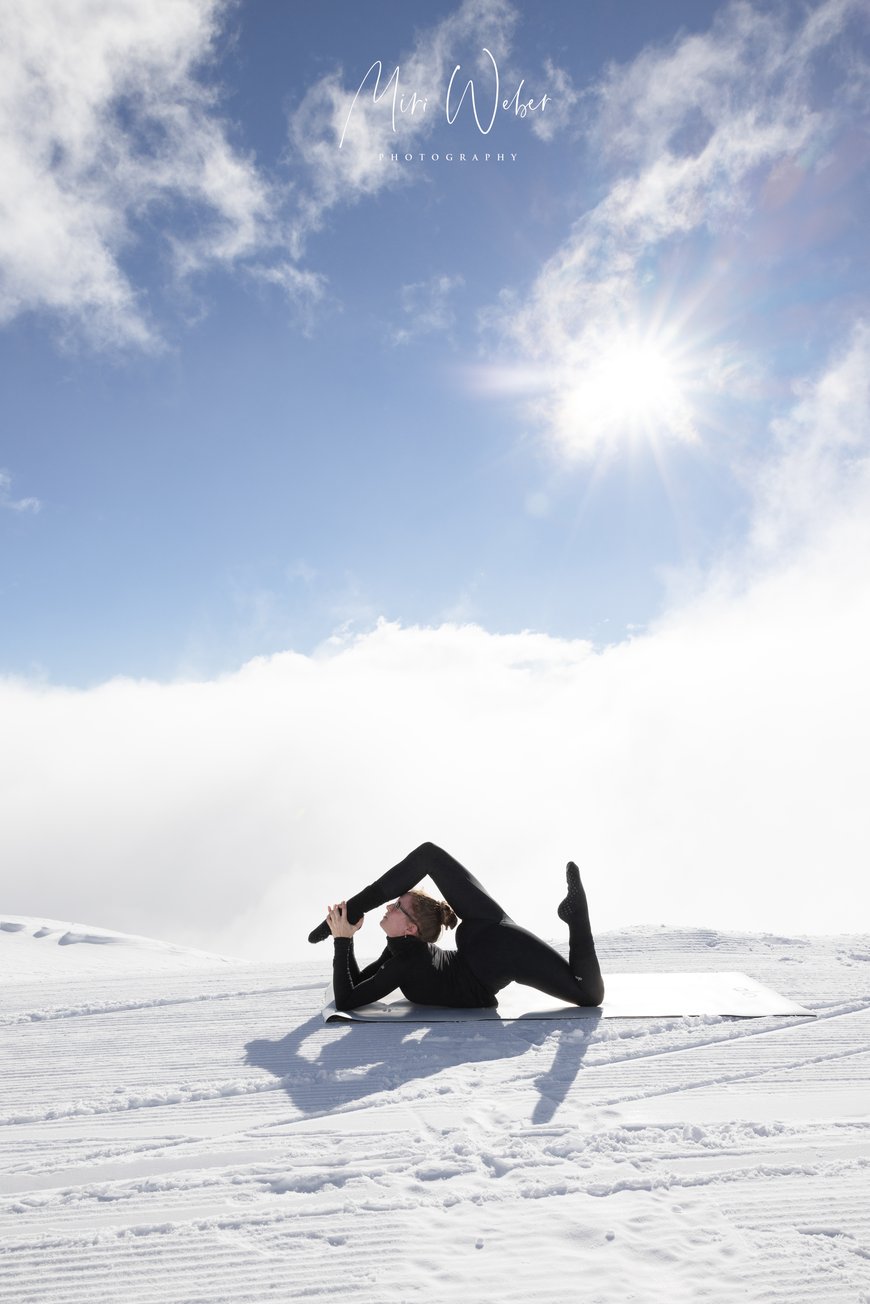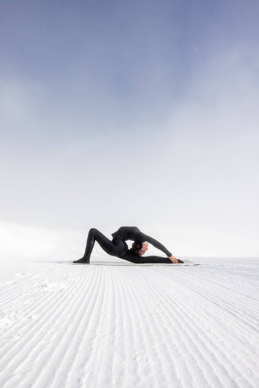Der Nebel machte dem blauen Himmel und der Sonne Platz. Die Natur zauberte für das Portrait Shooting eine natürliche Leinwand, welche die Kontorsion in den Vordergrund stellte.